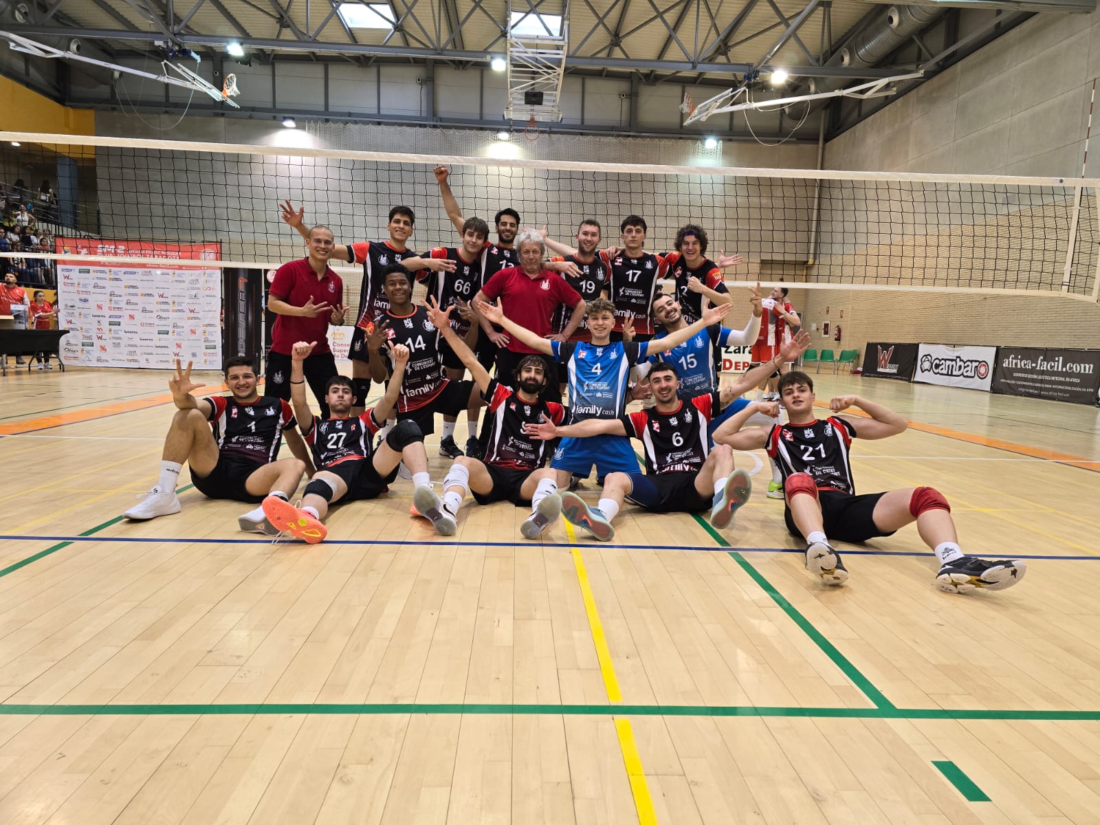 Respecto al encuentro en Zaragoza, el primer set, fue el mejor del partido, ninguno de los dos conjuntos dio su brazo a torcer hasta el final, que tuvo que alargase hasta el 34-36, donde los más de 500 espectadores pudieron disfrutar de un gran ambiente y un set de infarto que se decidió por pequeños detalles para el conjunto del Familycash Xátiva. En el segundo set los de Zaragoza sufrieron en recepción, lo que aprovecharon los de Xàtiva para tomar distancia en el marcador, obteniendo una ventaja que lograron gestionar hasta el final (20-25). Sin embargo, los del Zaragoza no habían dicho aun su última palabra, y espoleados por su público lucharon lo indecible, los de Xàtiva se defendían con uñas y dientes, de nuevo igualdad máxima y final de infarto que se llevó el Zaragoza por 28-26, lo que nos da la magnitud de la intensidad del partido. Los de Xàtiva recuperaron su gran juego en el cuarto set, el Zaragoza seguía luchando, pero fueron finalmente los setabenses los que ganaron por 19-25, poniendo un broche de oro a la temporada. Franco Molina se llevó el trofeo al mejor jugador del partido. Máximos anotadores: Zaragoza: David de Juan (25). Por el Xàtiva: Franco Molina (19) y Guillem García (17). Formaron por el Xàtiva: Daniel Mata, Guillem García, Rubén Martínez Ferrer, Borja Reyes, Nadir Neme, Alejandro Huerta, Pol Benlliure, Franco Molina, Ferran García, Nicolás Herencia, Josep Ribera, Matías Romero, Rubén Casero y Sergio Peñalver.