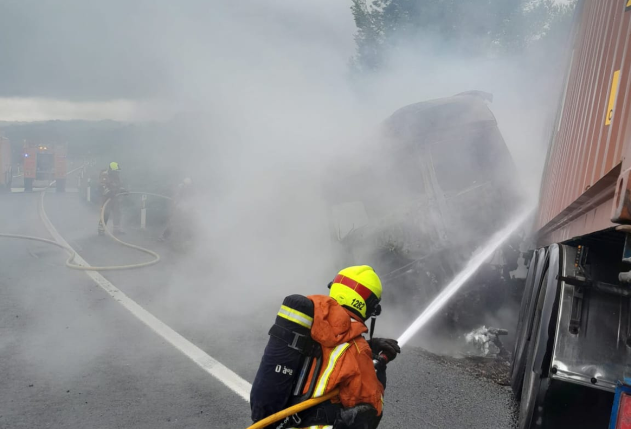 Además del camión, en el incendio se ha visto afectado otro vehículo que también se ha visto involucrado en el accidente. A la llegada de los bomberos, los ocupantes de los vehículos ya estaban fuera y no se ha requerido rescatar ni excarcelar a los conductores.