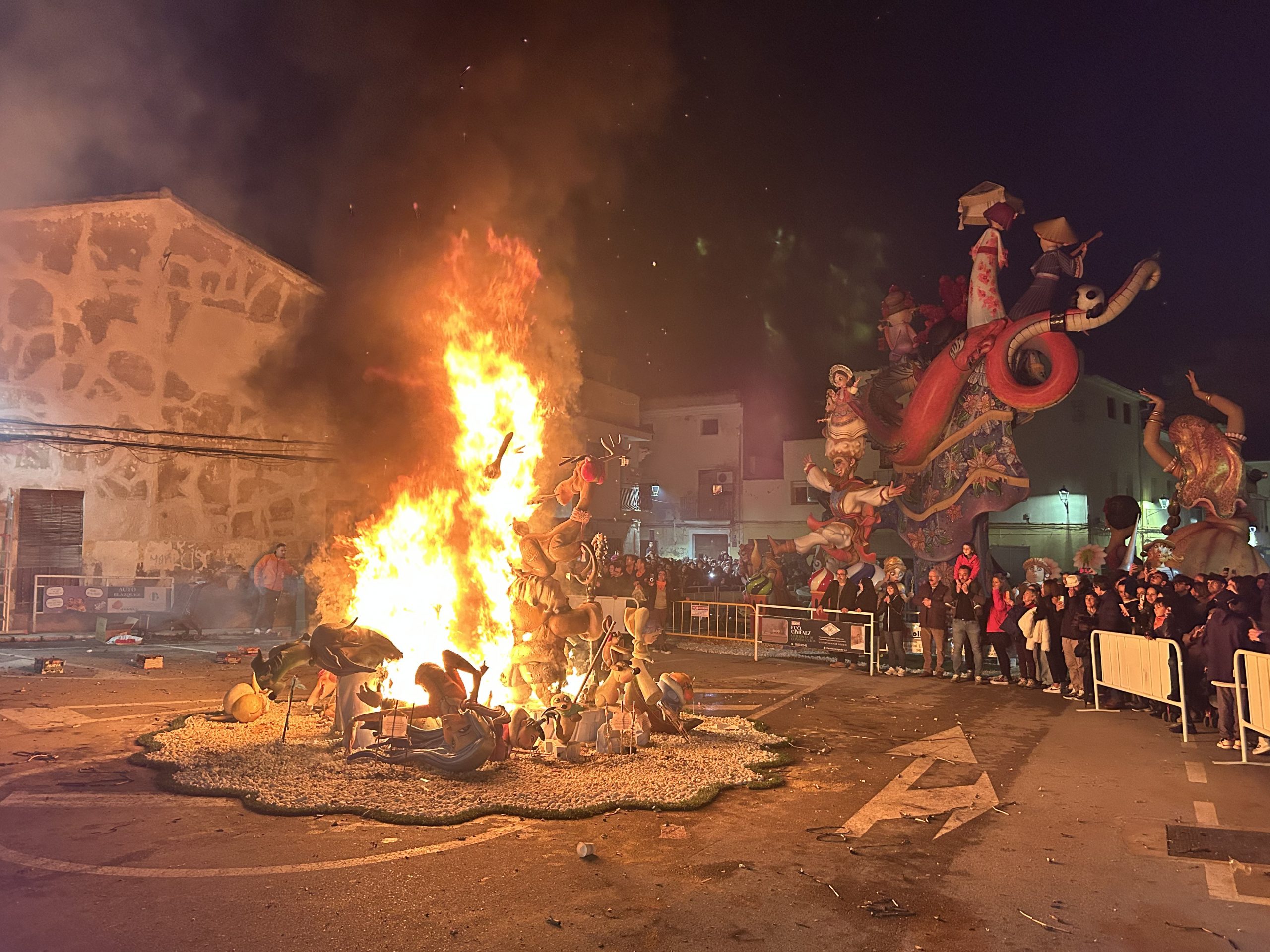 La Cremà de la mejor falla de Xàtiva, será a partir de la 1:00h, con la ganadora “Fort Barberà” de República Argentina. Este monumento, con tanta emotividad por su homenaje al recientemente fallecido Pepe Barberà y que ha sido diseñada por “Que calor fa en falles”, se ha visto perjudicado por la lluvia intensa de estas pasadas jornadas.